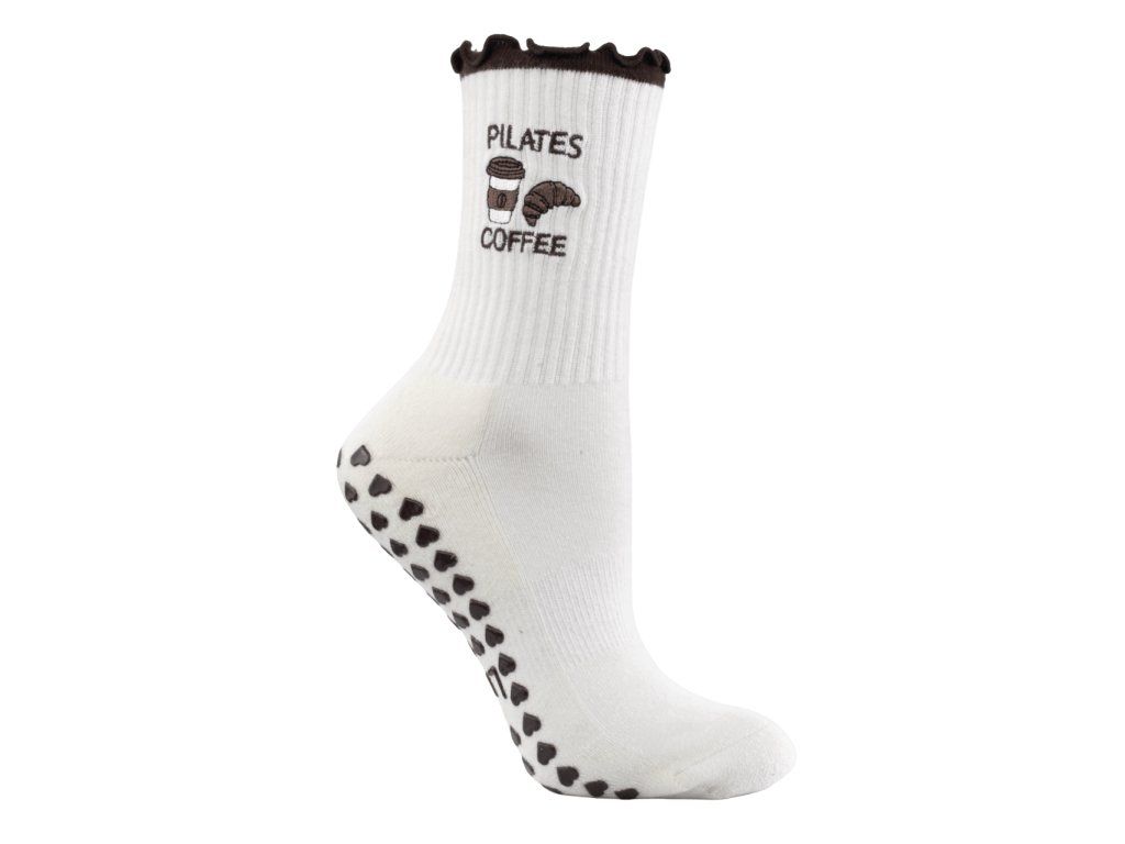 Objevte naše ikonické ponožky LUNARI Pilates&Coffee v krémové barvě s vyšívaným nápisem a hnědým volánkovým lemem. Protože každá pilates queen ví, že ráno začíná kávou a končí tréninkem. Nebo naopak. Nebo obojí najednou!